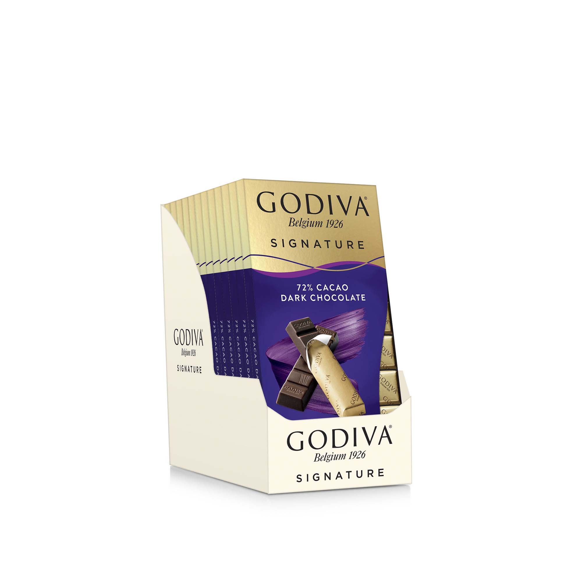 Indulge in a sweet treat of rich. decadent chocolate with our Dark Chocolate Mini Bars. Perfectly portioned and individually wrapped. these chocolate bars are ready for on-the-go enjoyment. Unwrap the decadent taste of Godiva chocolate with our Signature 72% Dark Chocolate Mini Bars. Crafted in the Belgian tradition of chocolate making. with attention to roasting and blending using the highest quality ingredients. these scrumptious chocolate treats offer a delicious. complex flavor. Enjoy intense cacao notes and a luxuriously smooth texture. with a fruity cacao finish. This daily indulgence is perfect for those afternoon chocolate cravings or for sharing with a friend.